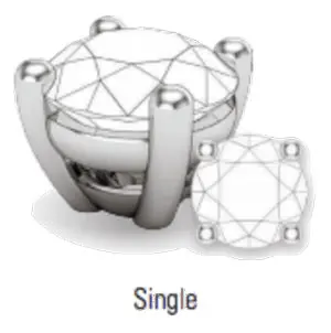 First, and most commonly seen, is the single prong. The single prong is usually used at four points surrounding the stone and is flattened or rounded at the top.